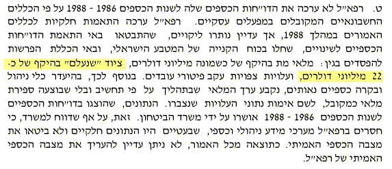 22 מיליוני דולרים, כפי שנרשם בדו"ח מבקר המדינה מס' 40 (1990) בעמ' 870: